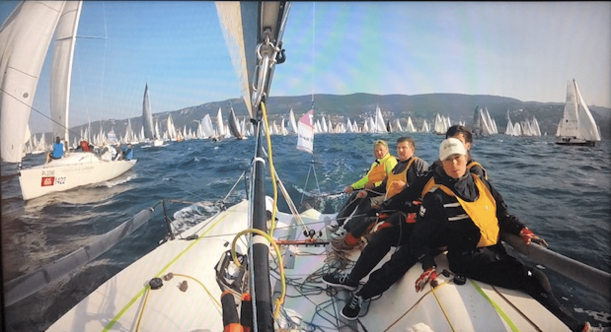 During the start of the Barcolana, all boats start at the same time from the same start line. There is an absolute chaos, as you have Maxi’s and other full racing machines alongside family boats, traditional boats and charter boats. Because of the difference in knowledge and extremely chaotic start, most of the family boats, traditional boats and charter boats start with their engine on and fenders on both sides.